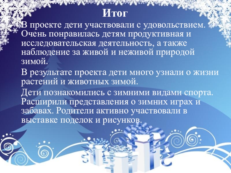 В результате проекта дети много узнали о жизни растений и животных зимой.