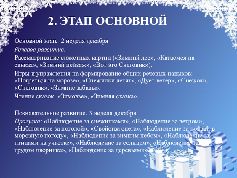 Игры и упражнения на формирование общих речевых навыков: «Погреться на морозе», «Снежинки летят», «Дует ветер», «Снежок», «Снеговик», «Зимние забавы».