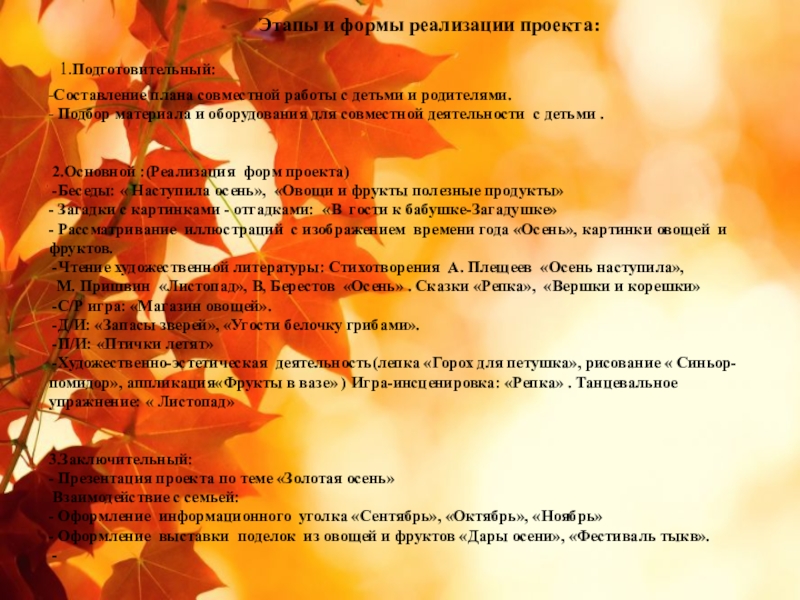 М. Пришвин «Листопад», В, Берестов «Осень» . Сказки «Репка», «Вершки и корешки»