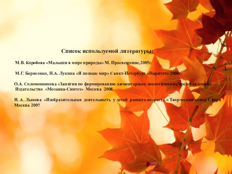 М.В. Коробова «Малыши в мире природы» М. Просвещение,2005г.