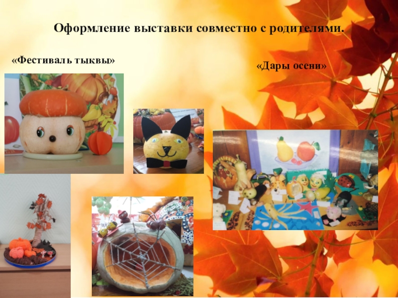 - Оформление выставки поделок из овощей и фруктов «Дары осени», «Фестиваль тыкв».