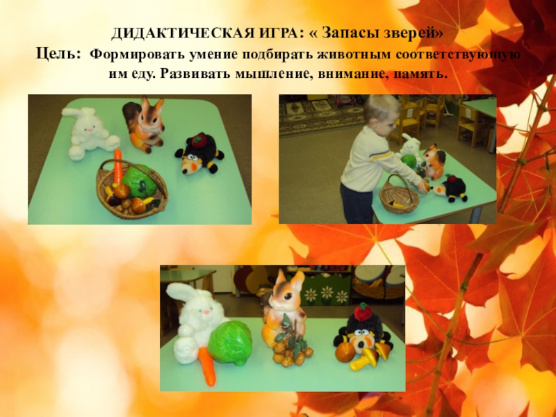 Слайд 13ДИДАКТИЧЕСКАЯ ИГРА: « Запасы зверей»