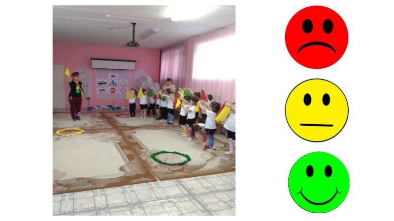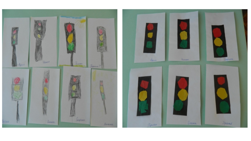 Учить различать проезжую часть дороги, тротуар, понимать значение зеленого, желтого и красного сигналов светофора.