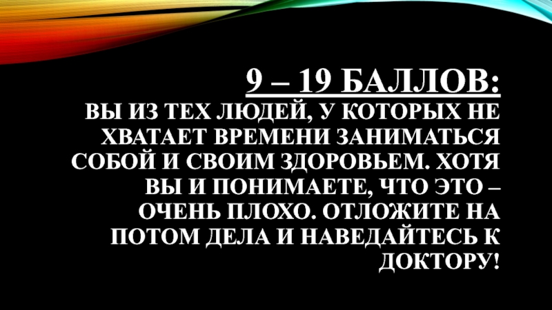 времени заниматься собой и своим здоровьем. Хотя Вы и понимаете, что это – очень плохо. Отложите на потом дела и наведайтесь к доктору!