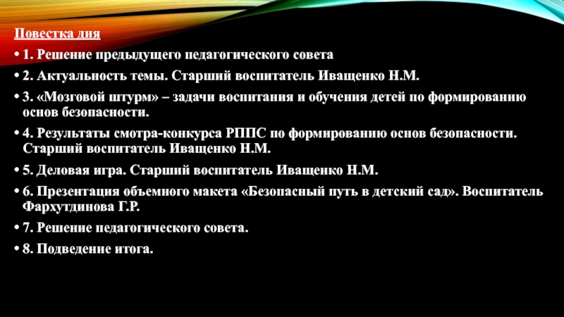 4. Результаты смотра-конкурса РППС по формированию основ безопасности. Старший воспитатель Иващенко Н.М.