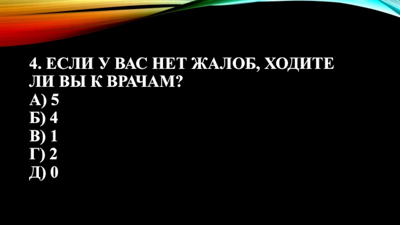Слайд 874. Если у Вас нет жалоб, ходите ли Вы к врачам?