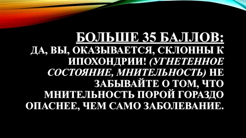 Да, Вы, оказывается, склонны к ипохондрии! (угнетенное состояние, мнительность)
