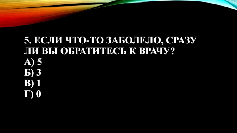 Слайд 885. Если что-то заболело, сразу ли Вы обратитесь к врачу?