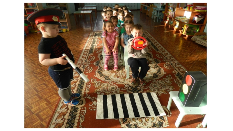 Уточнять знания детей о назначении светофора и работе полицейского.