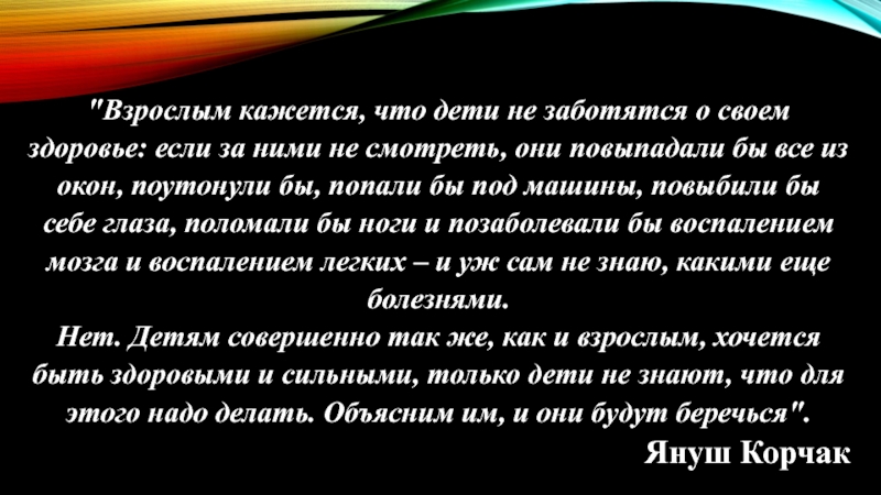 Слайд 5"Взрослым кажется, что дети не заботятся о своем здоровье: если за