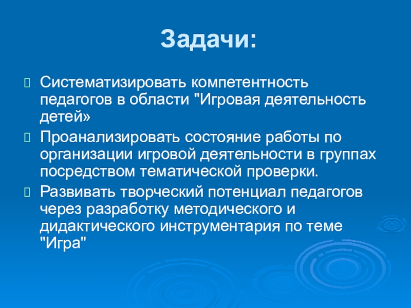 Систематизировать компетентность педагогов в области "Игровая деятельность детей»