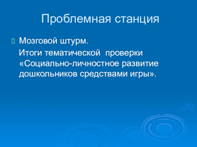 Проблемная станция Мозговой штурм.  Итоги тематической проверки «Социально-личностное развитие дошкольников средствами игры».