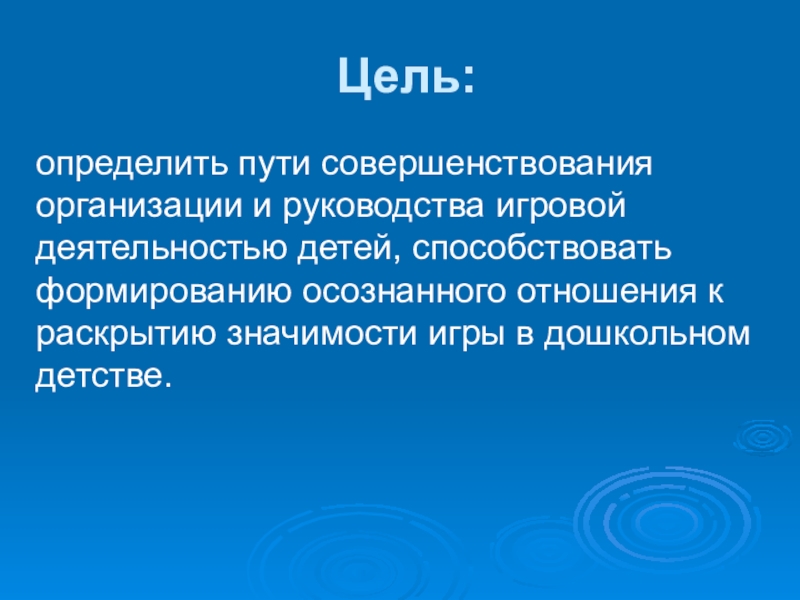 Цель:  определить пути совершенствования организации и руководства игровой деятельностью детей, способствовать формированию осознанного отношения к раскрытию значимости игры в дошкольном детстве.
