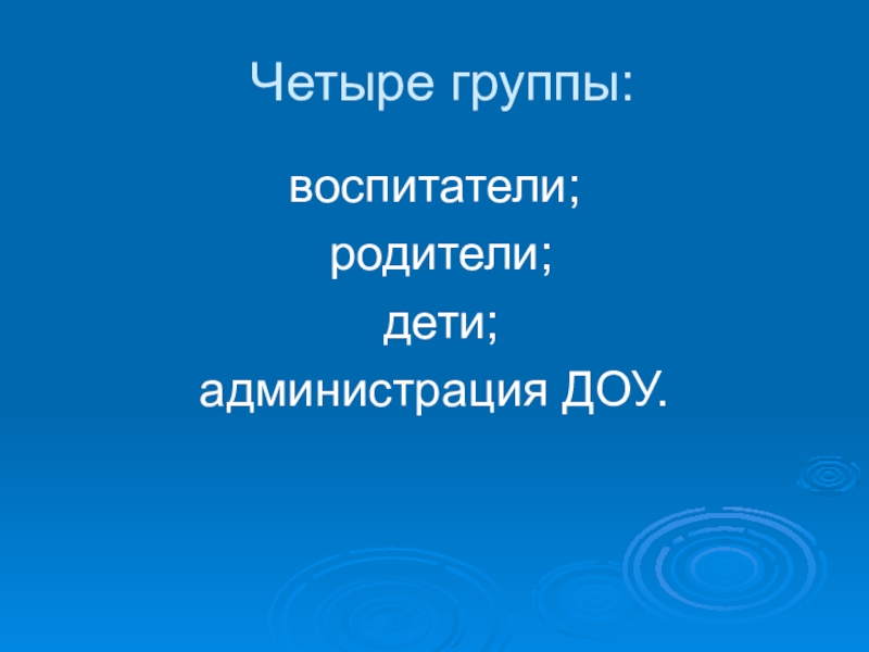 Четыре группы:воспитатели; родители; дети;администрация ДОУ.