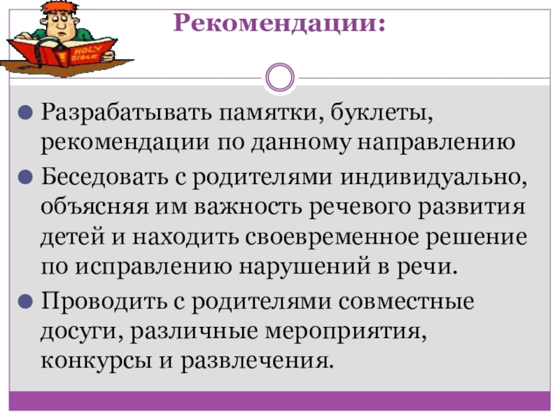 8. В работе с родителями использовать индивидуальный подход, учитывая личностные особенности каждой семьи.