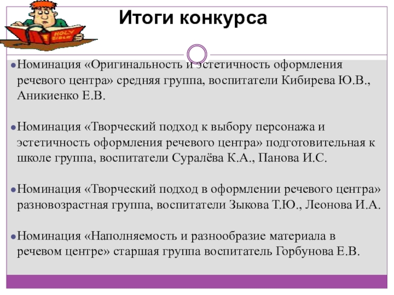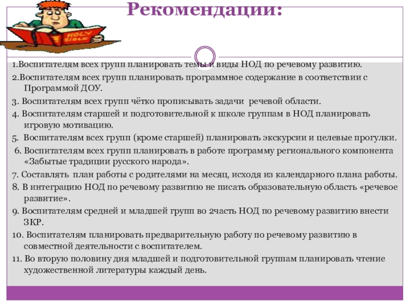 7. Пополнять и развивать предметно-развивающую среду направленную на развитие речи дошкольников.