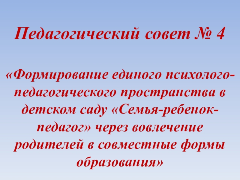 «Формирование единого психолого-педагогического пространства в детском саду «Семья-ребенок-педагог»