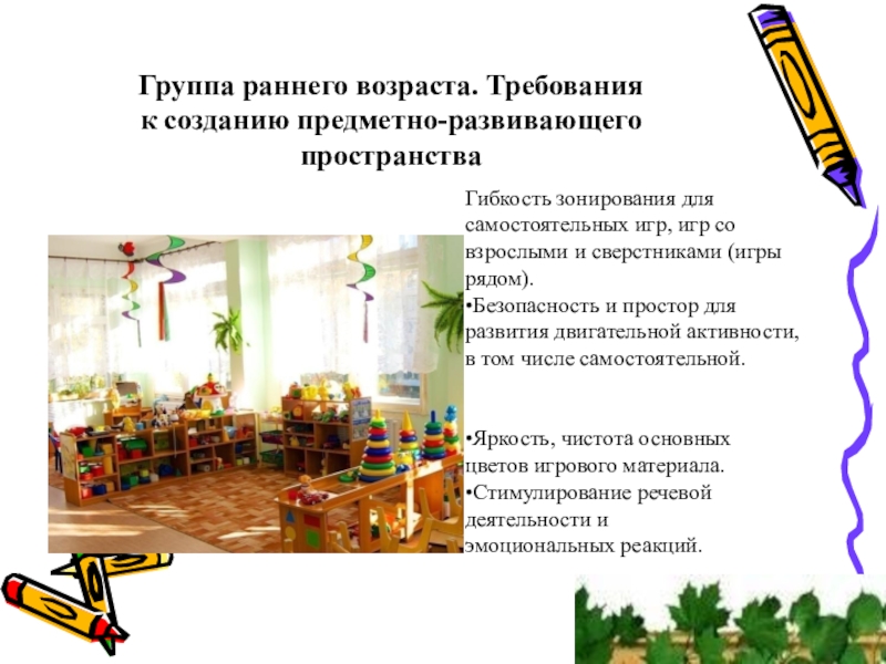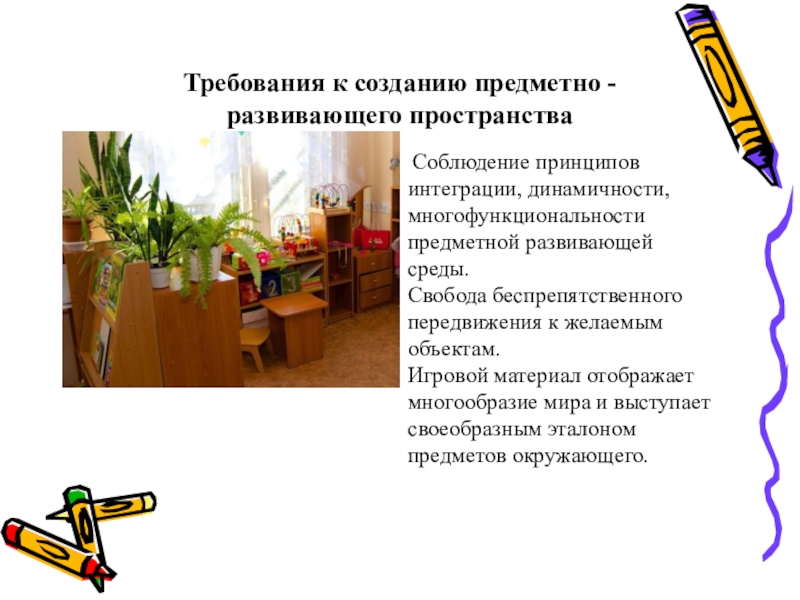 Слайд 11Требования к созданию предметно-развивающего пространства