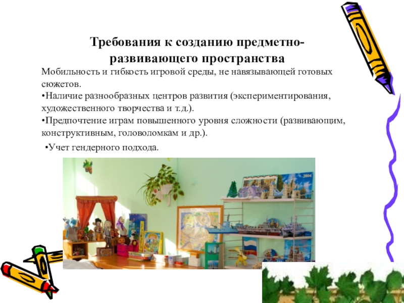 Слайд 16Требования к созданию предметно-развивающего пространства