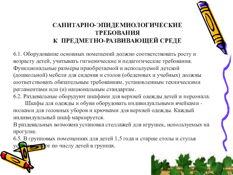 6.1. Оборудование основных помещений должно соответствовать росту и