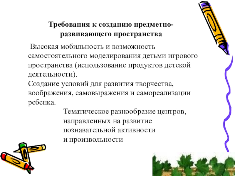Слайд 8Требования к созданию предметно -развивающего пространства