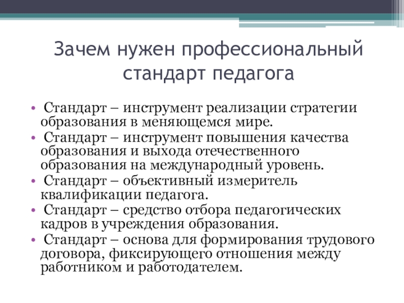 Слайд 5Зачем нужен профессиональный стандарт педагога