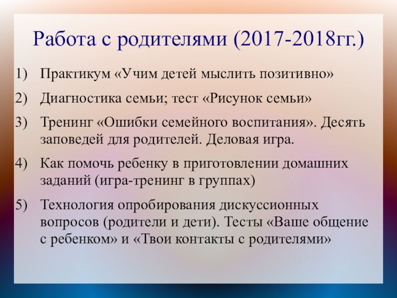 Слайд 32Работа с родителями (2017-2018гг.)
