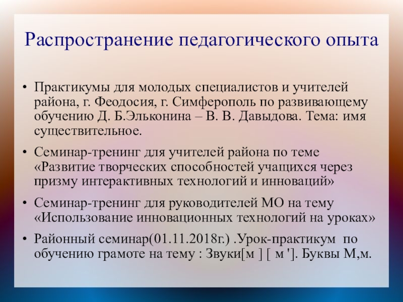 Слайд 23Распространение педагогического опыта