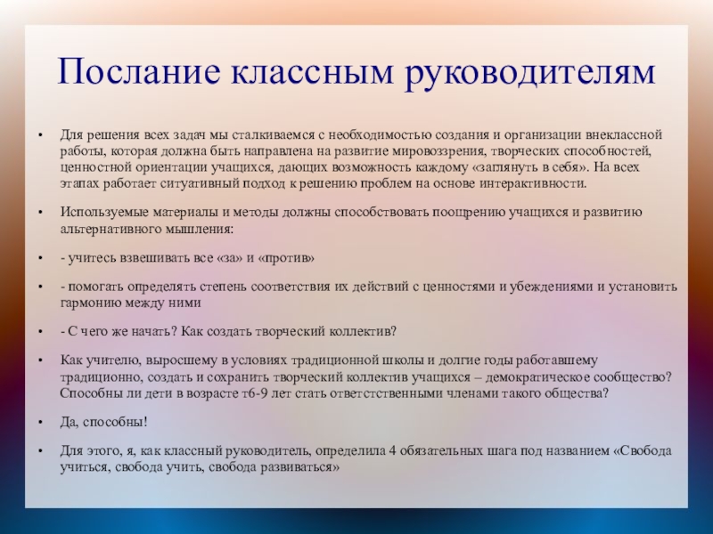 Слайд 26Послание классным руководителям