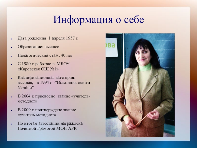 Слайд 2Информация о себе