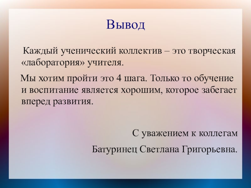 Каждый ученический коллектив – это творческая «лаборатория» учителя.