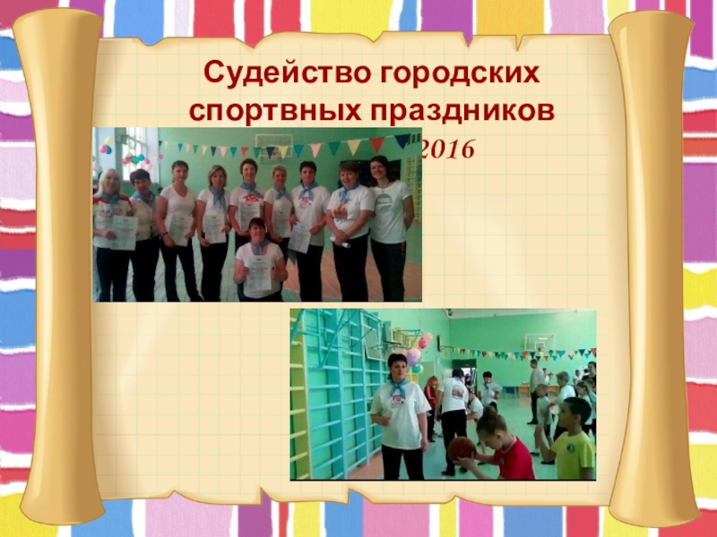 Слайд 12Судейство городских спортвных праздников «ДРОЗД» 2016