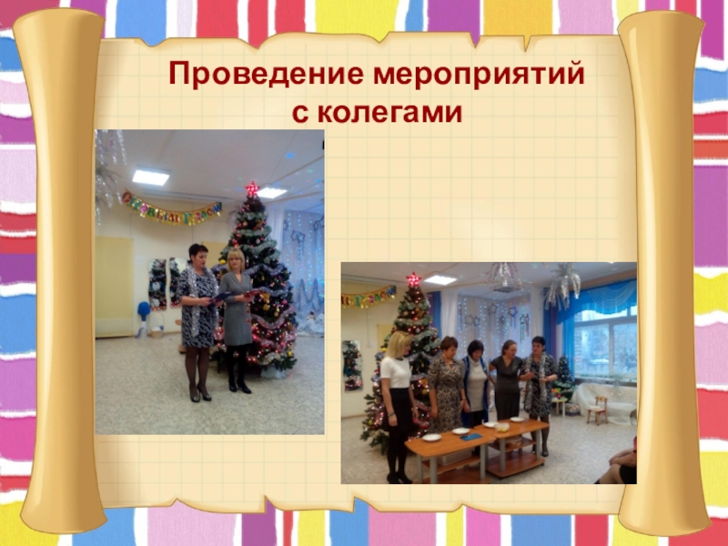 Слайд 11Проведение мероприятий с колегами