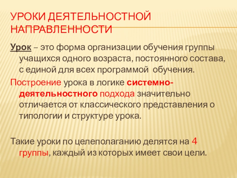 Построение урока в логике системно-деятельностного подхода значительно отличается от классического представления о типологии и структуре урока.