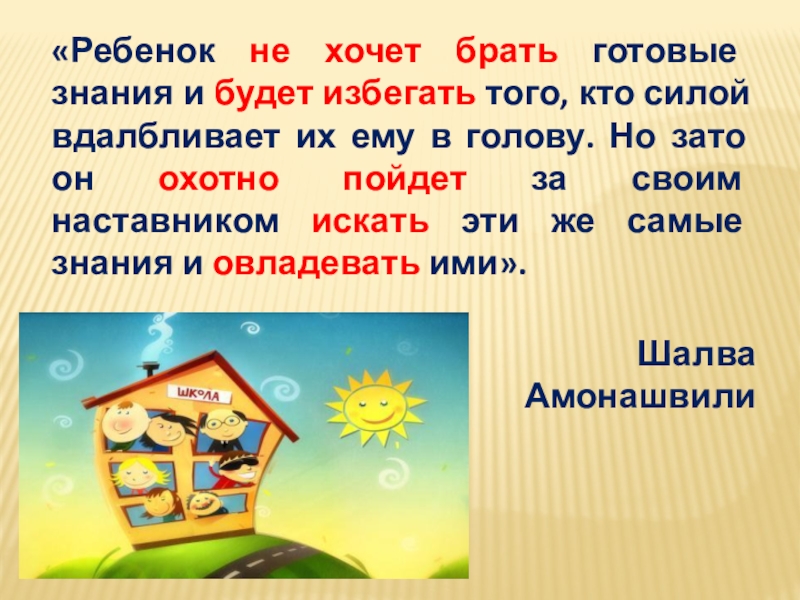 Слайд 5«Ребенок не хочет брать готовые знания и будет избегать того, кто