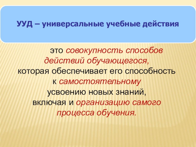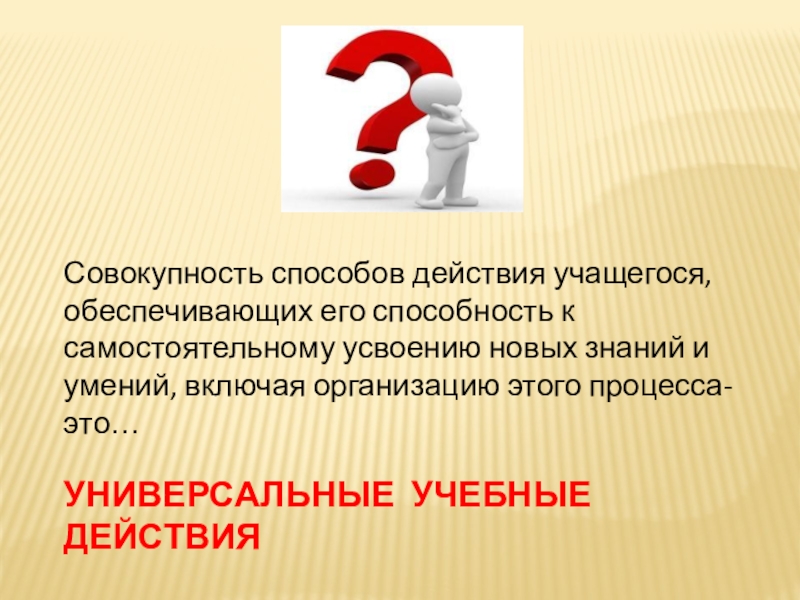Слайд 8Совокупность способов действия учащегося, обеспечивающих его способность к самостоятельному усвоению новых