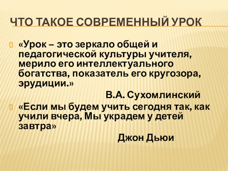 учителя, мерило его интеллектуального богатства, показатель его кругозора, эрудиции.»