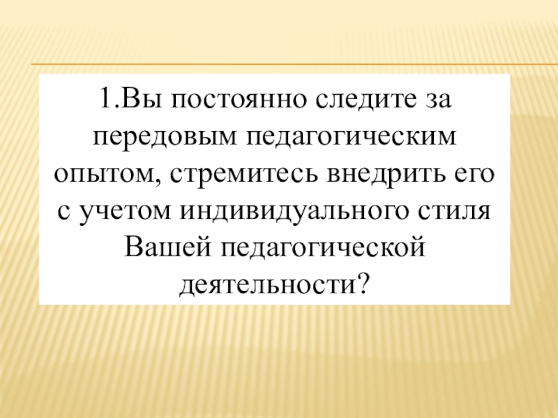 Слайд 491.Вы постоянно следите за передовым педагогическим опытом, стремитесь внедрить его с