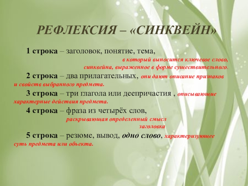 РЕФЛЕКСИЯ – «СИНКВЕЙН»