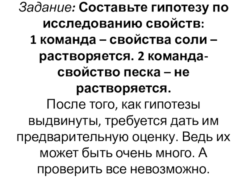 После того, как гипотезы выдвинуты, требуется дать им предварительную оценку. Ведь их может быть очень много. А проверить все невозможно.