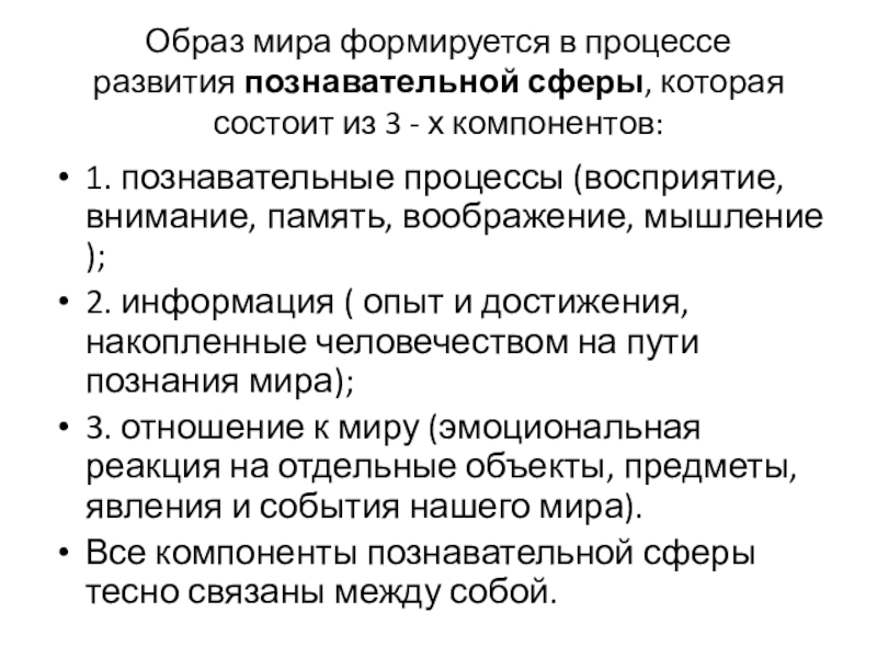 Образ мира формируется в процессе развития познавательной сферы, которая состоит из 3