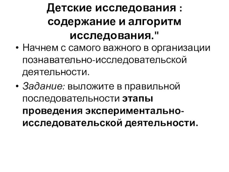 Слайд 9Детские исследования : содержание и алгоритм исследования."