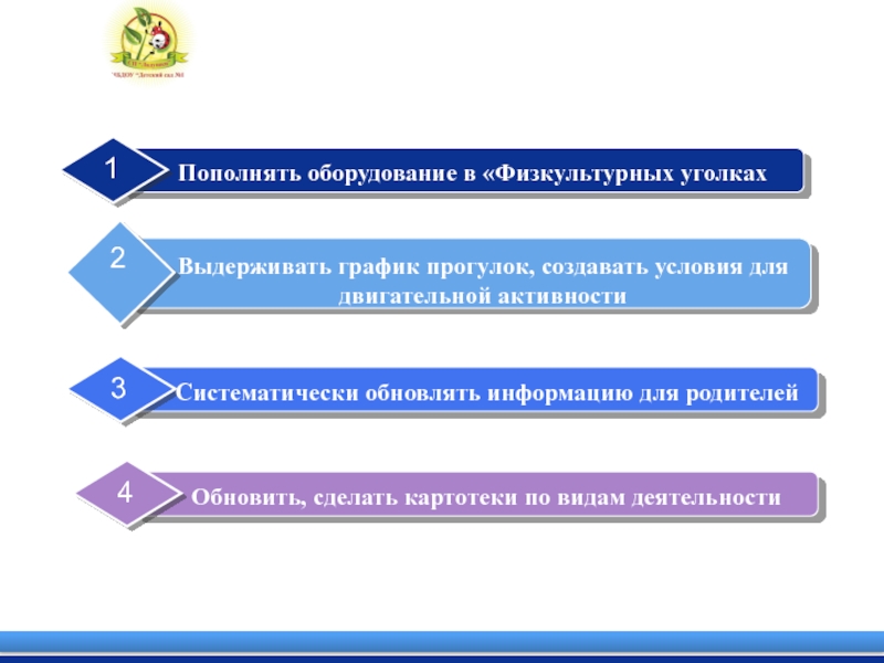 Мероприятия: спортивные развлечения, праздники, игры-забавы, двигательно-игровой режим, «Дни здоровья» и т.д.