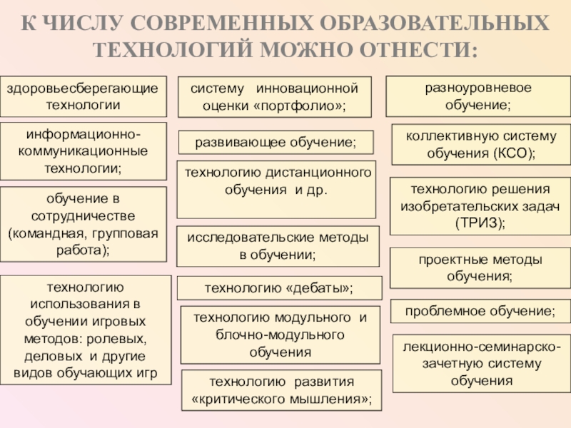 К ЧИСЛУ СОВРЕМЕННЫХ ОБРАЗОВАТЕЛЬНЫХ ТЕХНОЛОГИЙ МОЖНО ОТНЕСТИ: