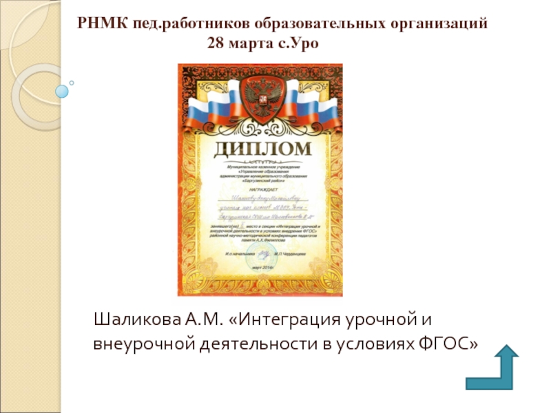 Шаликова А.М. «Интеграция урочной и внеурочной деятельности в условиях ФГОС»