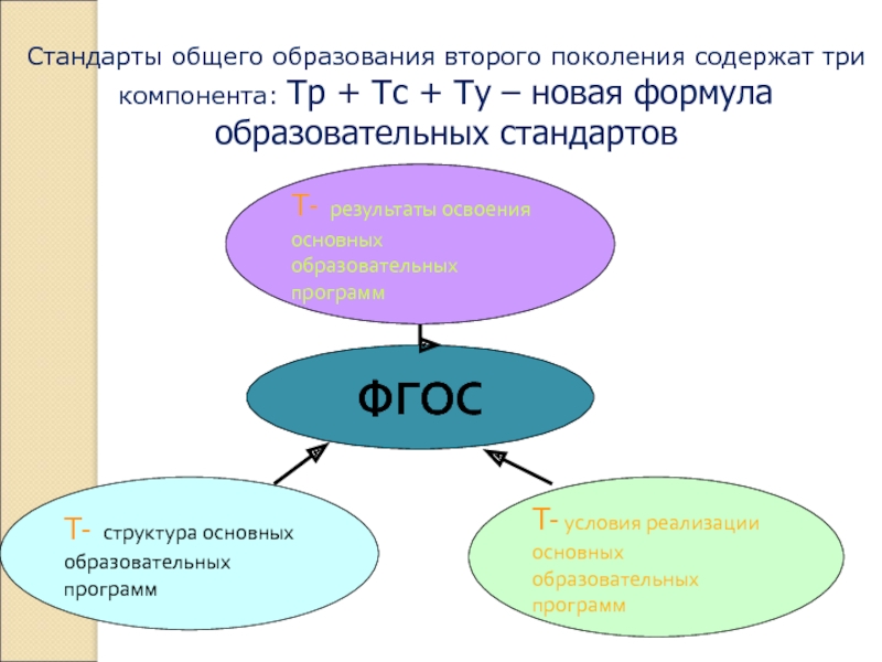 Стандарты общего образования второго поколения содержат три компонента: Тр + Тс + Ту – новая формула образовательных стандартов