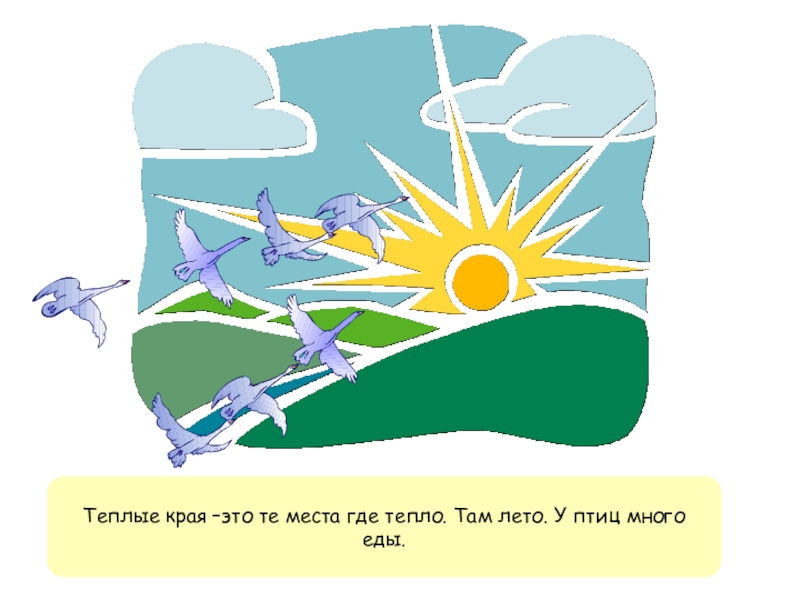 Слайд 3Теплые края –это те места где тепло. Там лето. У птиц