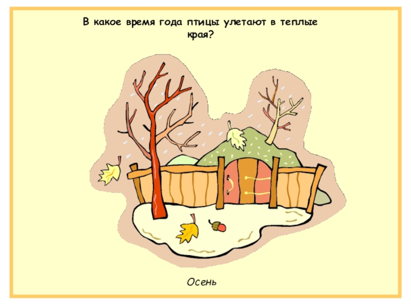 Слайд 2Осенью перелетные птицы улетают в теплые края.