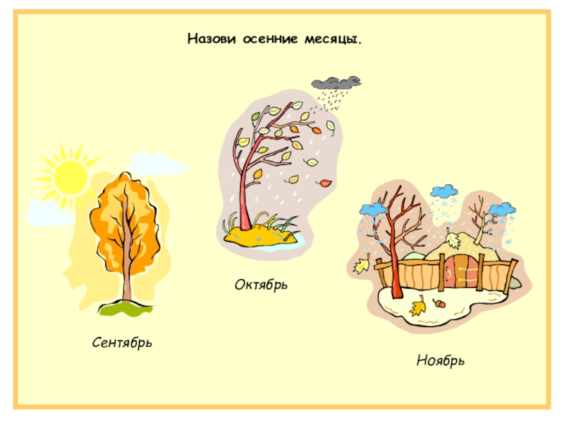 Назови осенние месяцы.СентябрьНоябрьОктябрь