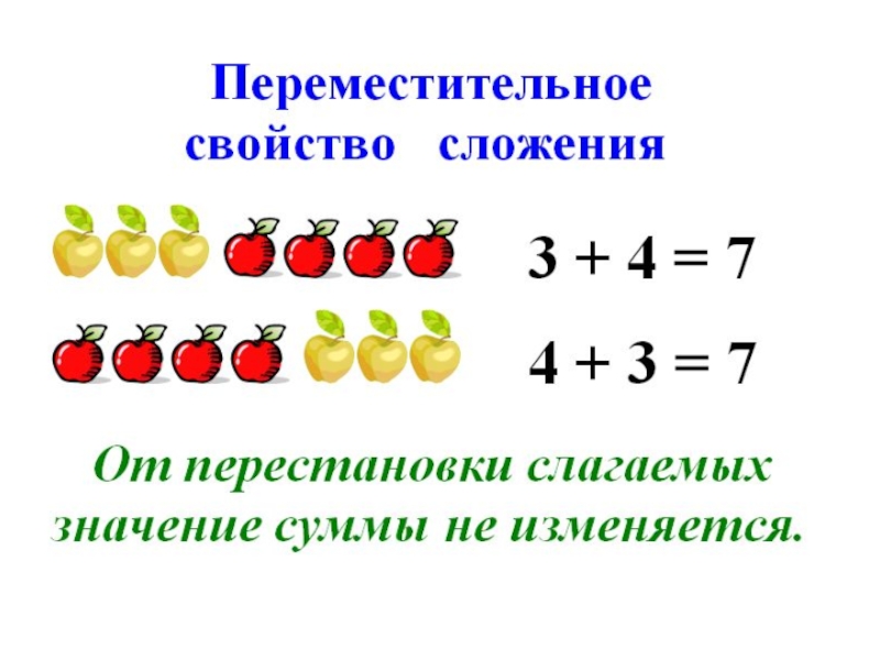 Презентация, доклад на тему Переместительное свойство сложения